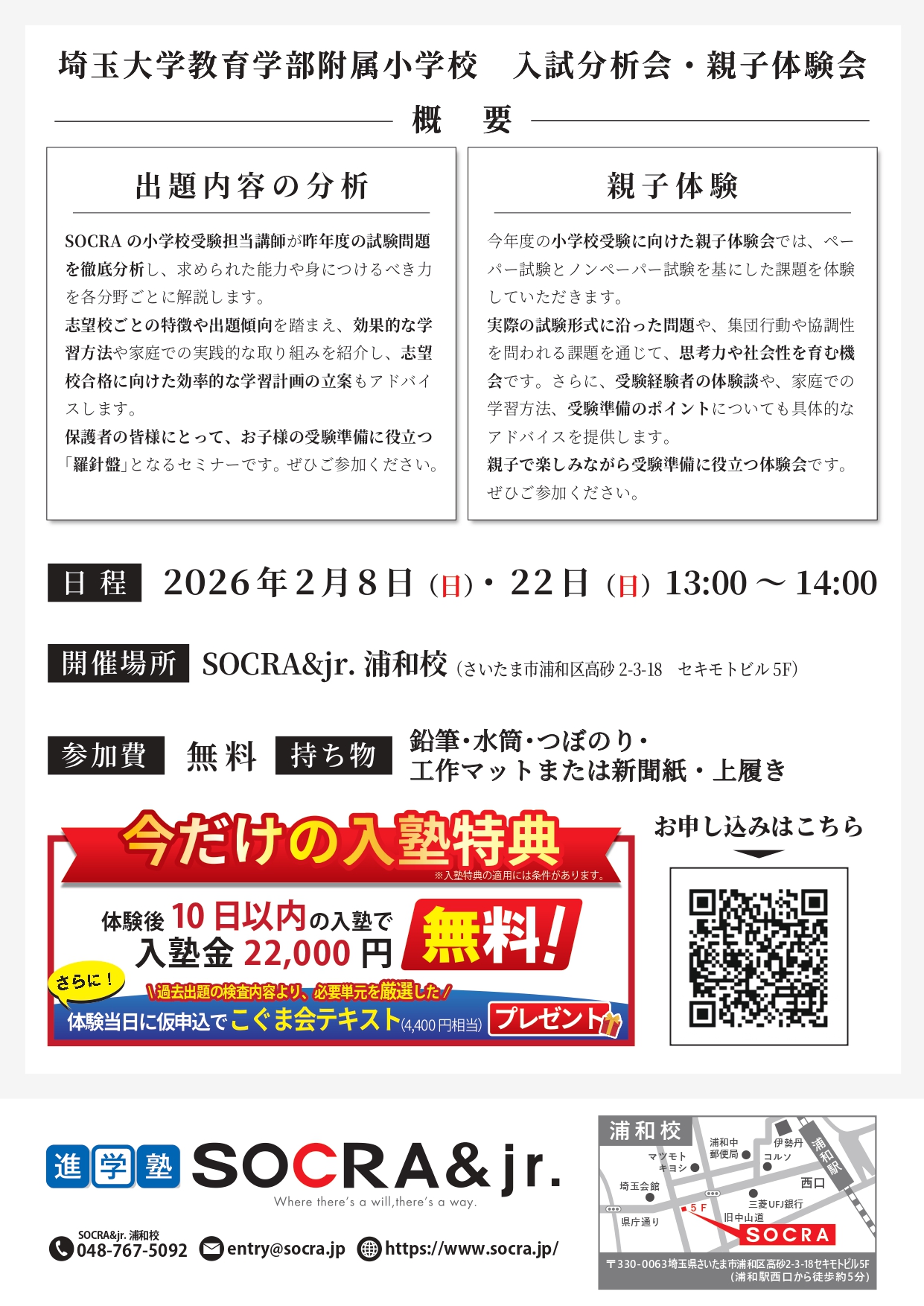 親子で楽しみながら受験準備に役立つ体験会です。ぜひご参加ください。